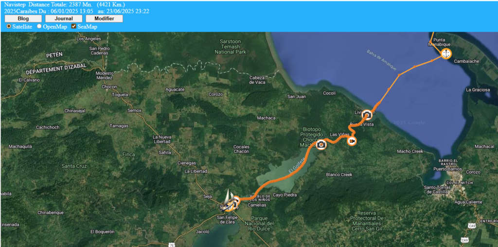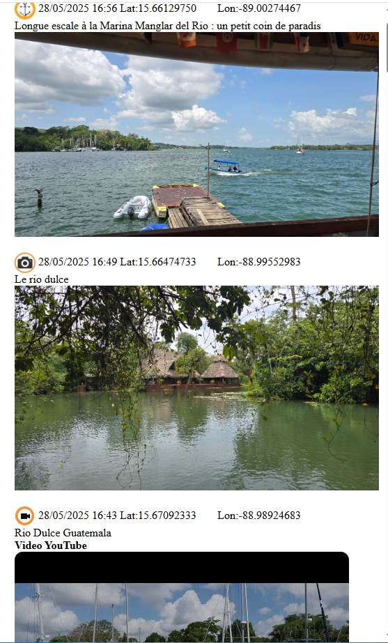 Le mode Blog de voyage avec l’affichage des commentaires, mouillages, photos et vidéos YouTube. Lien exemple